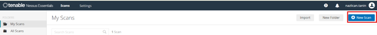 Sağ üst köşedeki "New Scan" (Yeni Tarama) butonuna tıklanır.