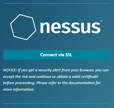 3-Kurulum tamamlandıktan sonra web servis açılmaktadır: https://localhost:8834/#/