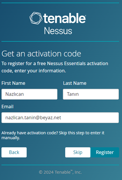 7- Aktivasyon kodu girildikten sonra kurulum başlar ve Nessus ekranı açılır.