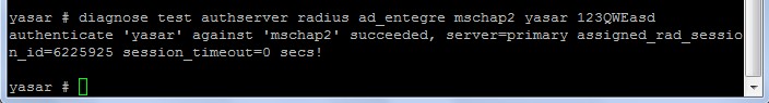 # diag test authserver radius <server_name> <chap | pap | mschap | mschap2> <username> <password>