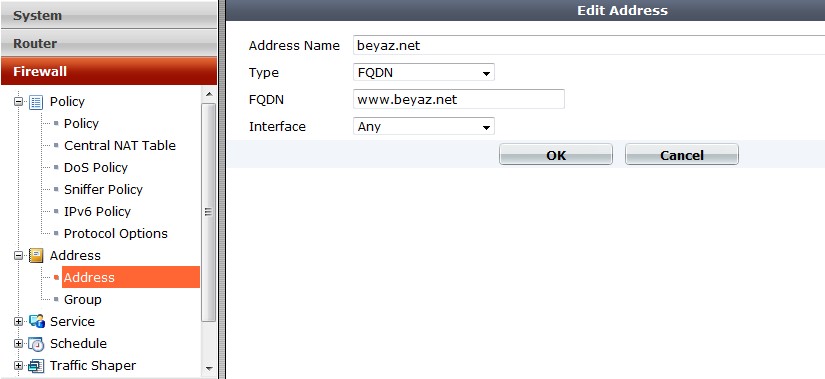 Fortigate üzerinde herhangi bir adres tanımı FQDN (fully qualified domain name) olarak yazılabilir.