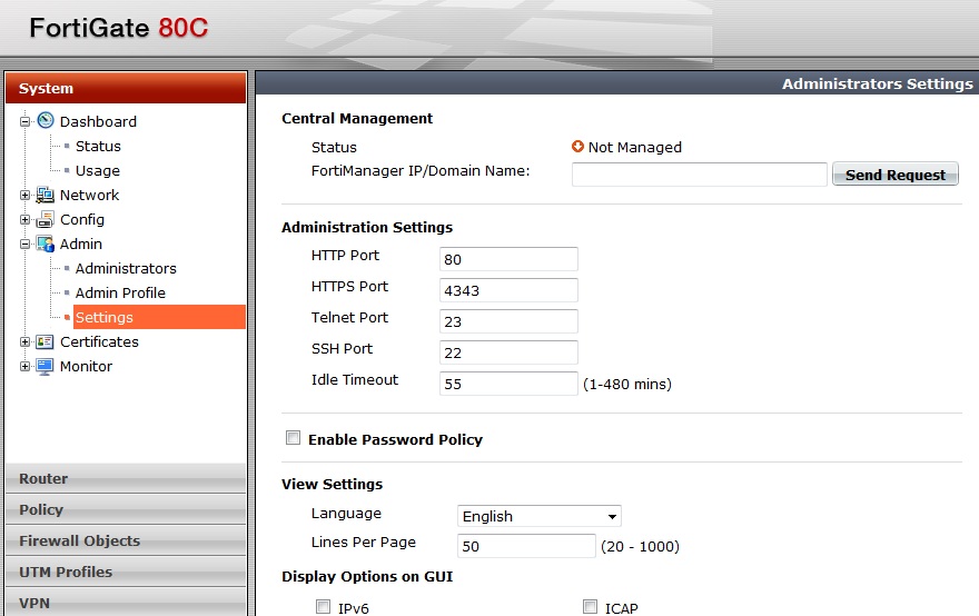 FortiGate cihazımız üzerinde güvenlik sebebi ile varsayılan olarak gelen port numaralarını değiştirmek daha sağlıklı olacaktır. İlgili port değişikliklerini sırası ile system - admin - settings tabı altından gerçekleştirebiliriz.